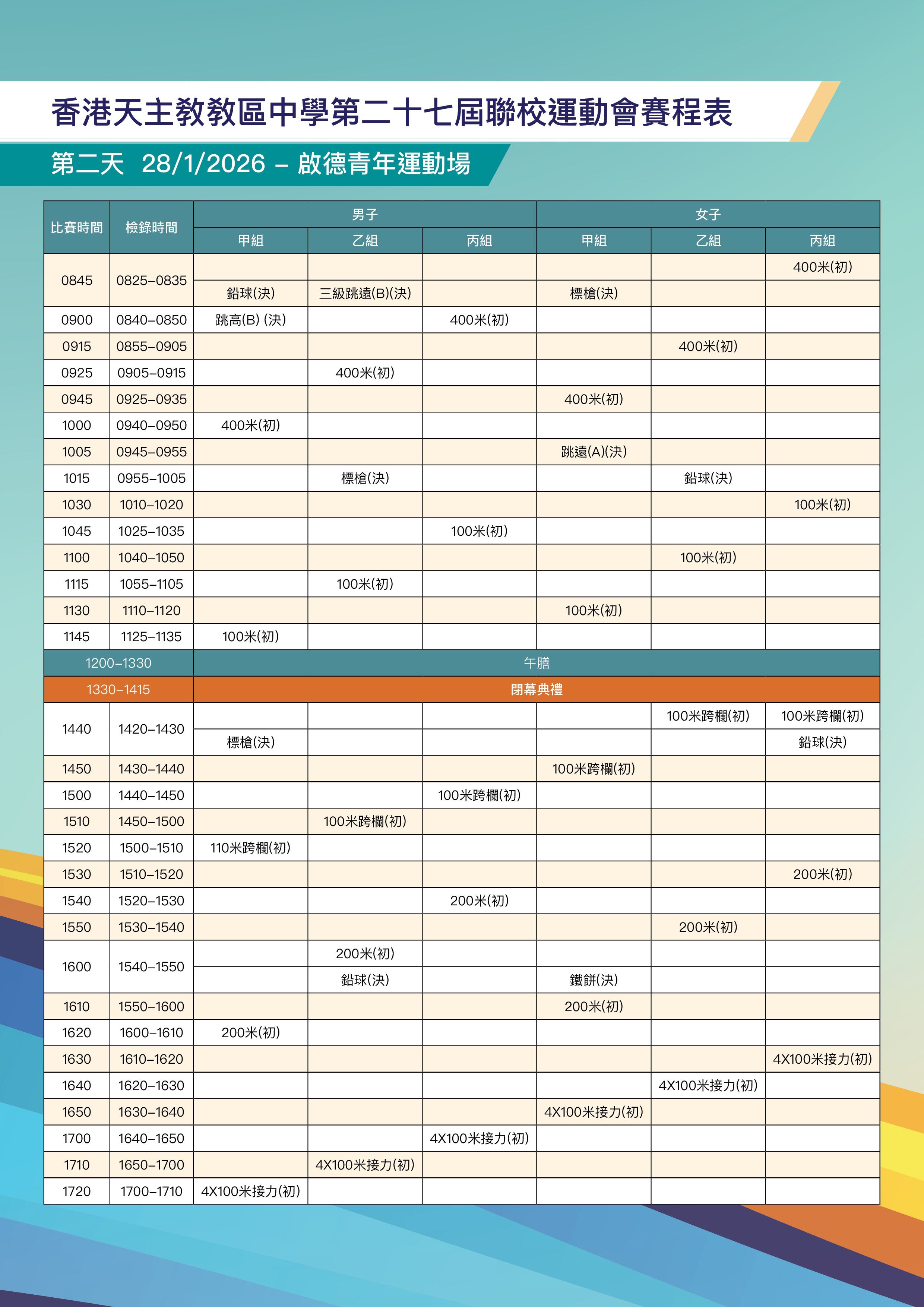 27th Hong Kong Catholic Diocesan Secondary Schools Joint Athletics Meet